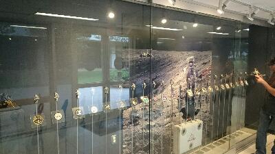 A l’entrée, une vue d’ensemble de toutes les montres Omega qui sont parties dans l’espace lors des missions.
