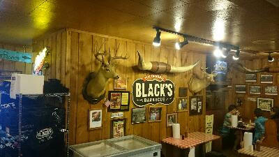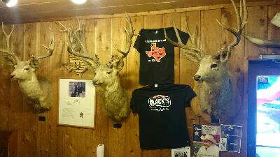 L’intérieur du resto avec les trophés au mur.