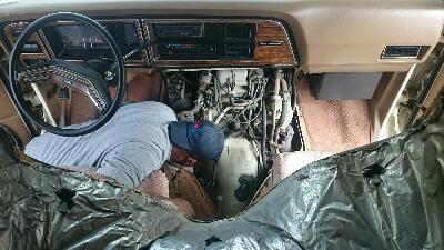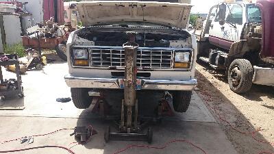 Le garage devait recevoir la transmission, dans la journée, donc le mécanicien a démonté l’ancienne en début d’après-midi. Elvis était sur 2 criques à l’avant.