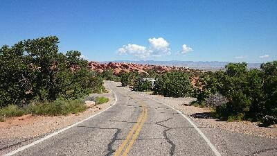 Arrivée à Arches Park à 20h, mais il me reste 37 km pour atteindre le camping. J’ai dû arriver vers 21h30, ça prends du temps à rouler à 15-20 Mi avec des routes de montagne et l’orage qui était au dessus de moi.