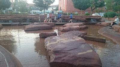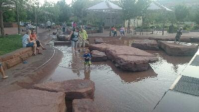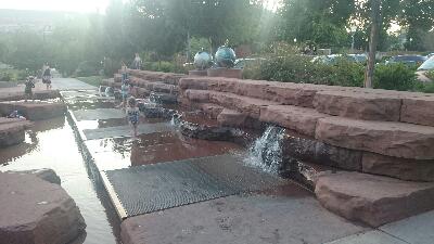 Et je suis tombé sur un parc avec une petite cascade et un court d’eau pour se tremper les pieds, il y avait aussi de grands jets d’eau que l’on pouvait traverser.