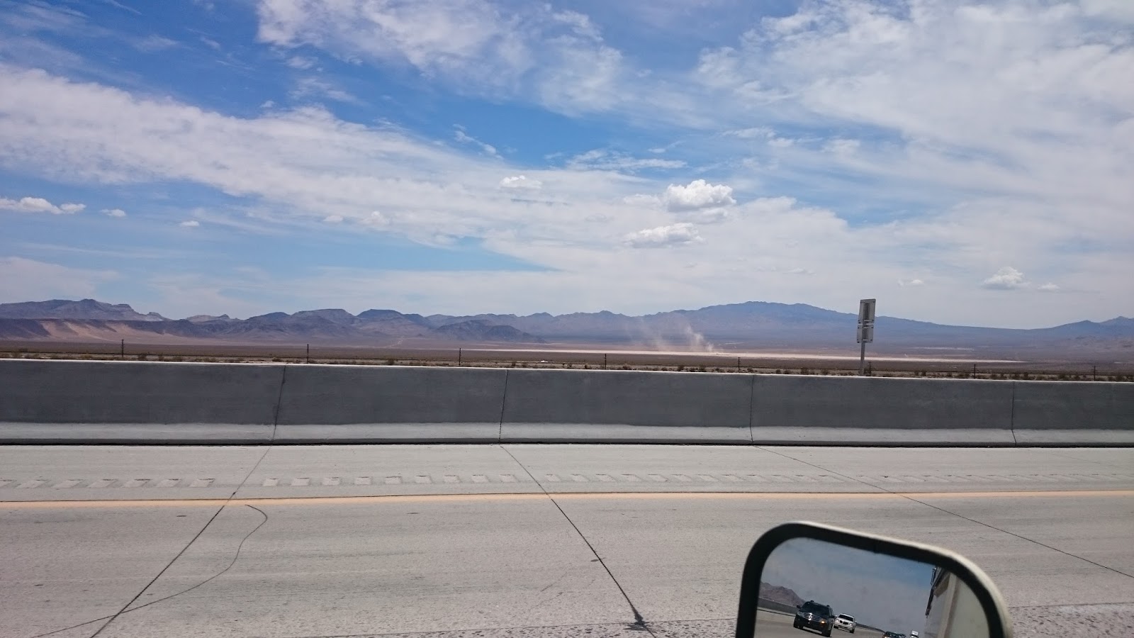 J’ai essayé de prendre en photo ces phénomènes que l’on voit dans les films tournés en plein désert : les DUST DEVIL, mais pas facile quand tu es sur l’autoroute avec un motorhome et pas de sortie proche. J’en avais vu un se produire pas loin de moi sur la route 66, à Seligman, mais il y avait des maisons devant, je ne voyais que le haut. Impressionnant !