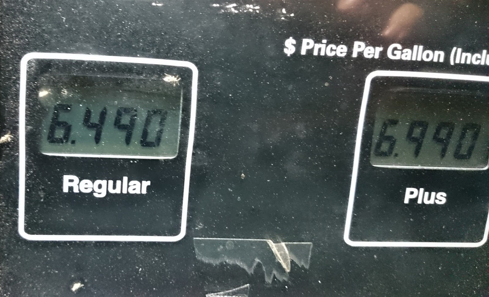 Là, l’essence ordinaire est à ~2,95$/G (0,78$/L = 0,69€/L). Je ne me souviens plus à combien était le $US à l’époque, mais il change très souvent. Le moins cher que l’on avait trouvé est 2,35$/G (au Texas, bien sûr, soit 0,54€/L)
